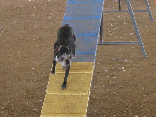 Nutmeg looking ahead from the dog walk. Can you believe she actually ignored all those bird feathers on the ground for this run?