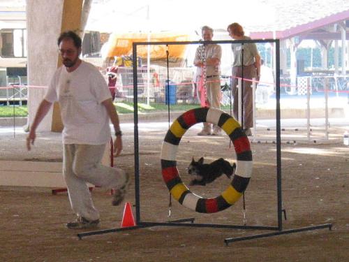 Nutmeg's last run of the last day. For some reason Nutmeg tends to do very well on her very last run of a trial. I haven't figured out how she knows it's the last run though. Here she is getting her last Novice qualifying score and her Novice title.