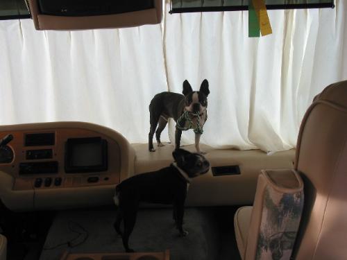 The dogs playing. They are very comfortable in the RV now and view it as a home away from home.