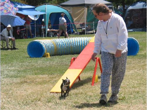 Nutmeg off the teeter. She's a little warm here but she ran nicely with me.