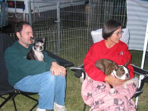 Nutmeg gets comfortable on Rob's lap while Dawson gets to spend some quality time with his breeder,