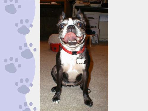 When asked what she thinks about having another dog, and a Boston at that, in the house Nutmeg just grins.