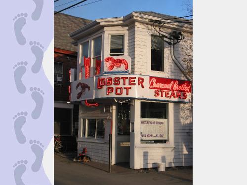 The restaurant in Pronvincetown where we had an early dinner. There was a great view of the Provincetown Harbor out the back of the restaurant and we could see the Pilgrim Monument, Long Point Light, Wood End Light and even the Cape Cod Light. Before leaving Provincetown we also stopped to see the Race Point Light but we did not get out of the car. The wind was blowing so hard that sand was forming dunes around the cars in the parking lot. | ||||