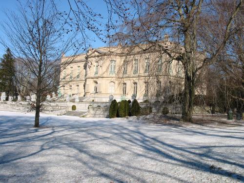 The back of the Elms, one of the Newport Mansions. You can only see a small portion of the backyard from this view.