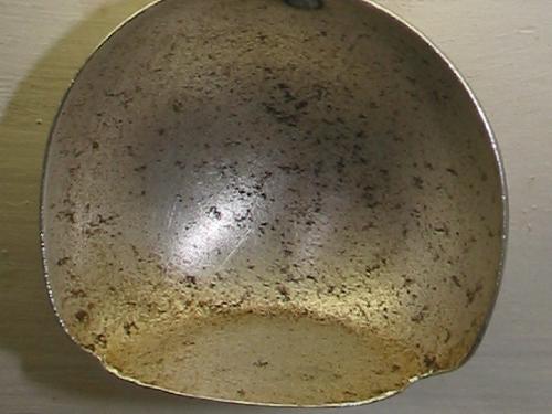 Here is a close up of the ladle. Notice how the edge between the flat bottom and the round sides has been worn away from use.