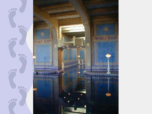 Looking into the ladies pool area. The light is from glass bricks that run along the nets of the tennis courts above.