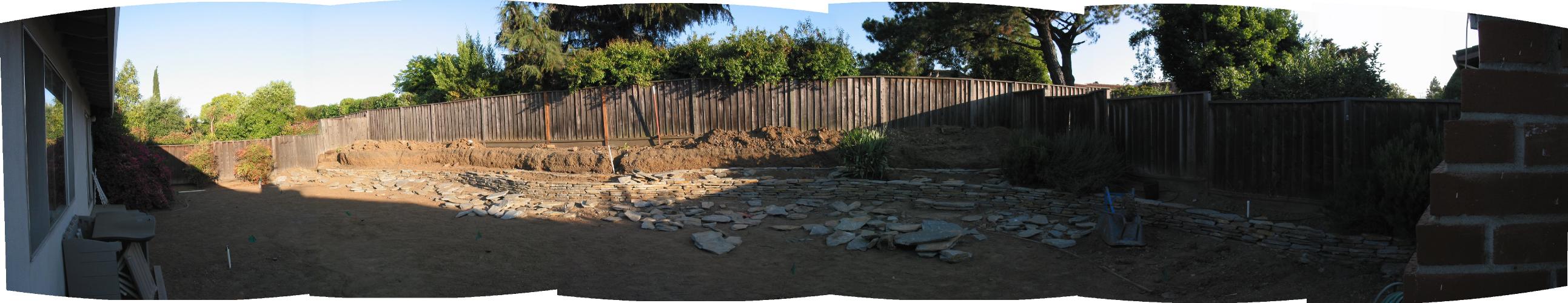 This was taken June 19. The bottom wall is complete and the back wall is just started. They had to pause for a bit in the building because they ran out of stone and had to order more