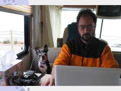 Nutmeg gives some serious thought to Rob's computer efforts.